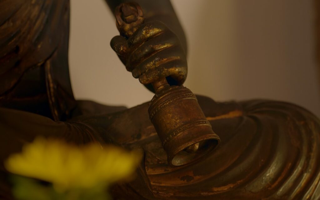 ในพิธีกรรมทางพุทธศาสนาแบบลึกลับ ระฆังจะถูกเขย่าและตีเพื่อปลุกและปลุกเทพเจ้าต่างๆ ระฆังมีด้ามจับห้าแฉก